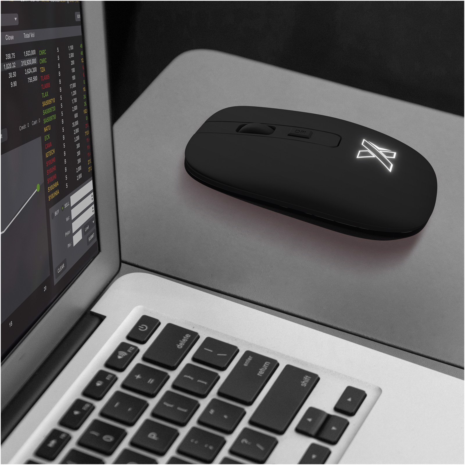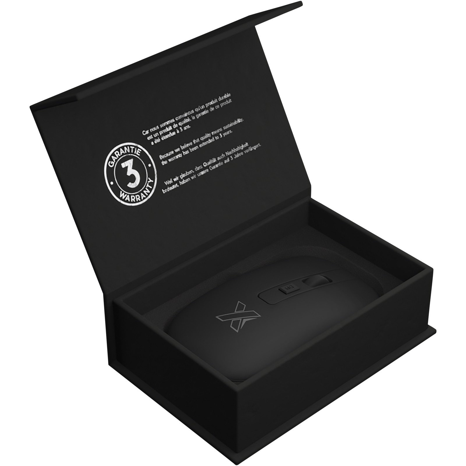 Wiederaufladbare kabellose Maus (10,8 x 6,2 x 3 cm) mit antibakterieller Beschichtung und leuchtendem Logo. Mit einer einzigen Ladung kann die Maus bis zu 8 Stunden lang verwendet werden. Wird mit einem Ladekabel aus rPET geliefert. Verpackt in einer schwarzen Geschenkbox (13,1 x 8,8 x 4,6 cm) mit Magnetverschluss. Inklusive 3 Jahre Garantie.