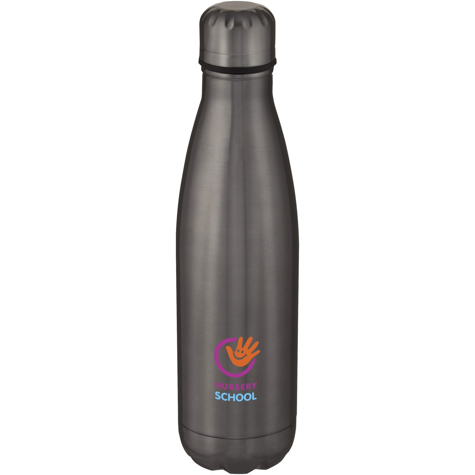 Bouteille en acier inoxydable à isolation sous vide avec un design iconique. L'acier inoxydable 18/8 avec isolation conserve les boissons chaudes ou froides pendant plusieurs heures. Testé et approuvé en vertu de la législation allemande sur la sécurité alimentaire (LFGB), et testé pour la teneur en phtalates conformément à la réglementation REACH. Dotée d'une base qui s'adapte à la plupart des porte-gobelets, cette bouteille d'eau au look épuré est un article promotionnel parfait. Capacité de 500 ml. Livrée dans un coffret cadeau en carton recyclé.