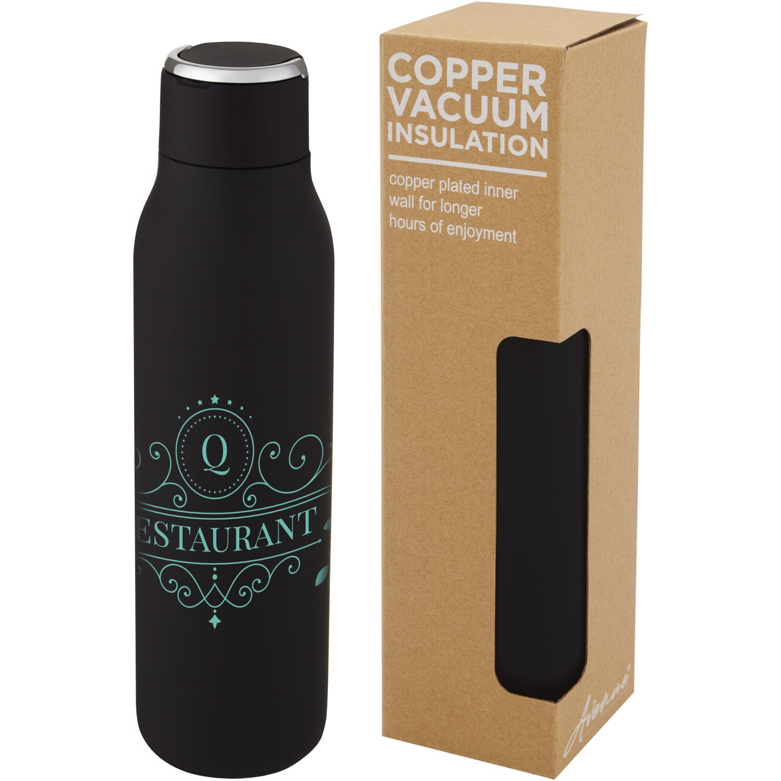 Bouteille isotherme Marka 600 ml avec couche de cuivre et avec boucle métallique - Noir
