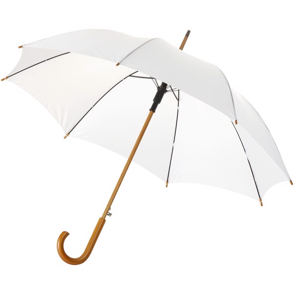Parapluie 23\" à ouverture automatique, poignée et mât en bois - Blanc