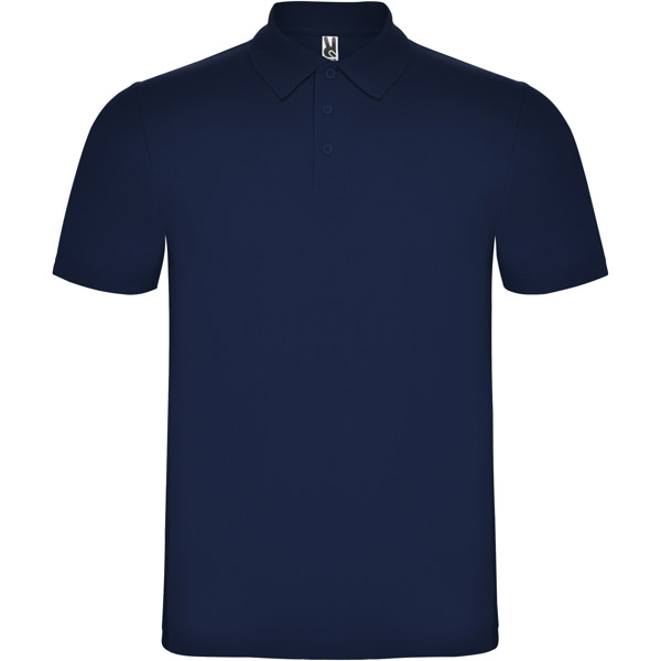 Polo à manches courtes avec patte de boutonnage à 3 boutons et col en côte 1x1. Coutures recouvertes renforcées au col. Étiquette détachable. Le mannequin mesure 190 cm et porte la taille L.